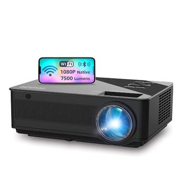 Native 10809 WIFI Projector Full HD Video, Bluetooth, 7500 Lumens Wireless Mirror to Phone or IPad HDMI Hookup for Laptops