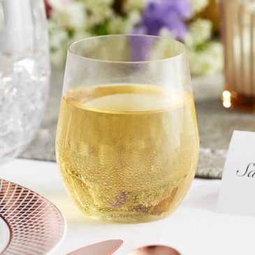 8 oz clear plastic stemless wine glasses are perfect additions to your event equipment rentals. Get a pack of 16 for just $16.00, making them an affordable choice for your party supplies and plastic tableware needs.